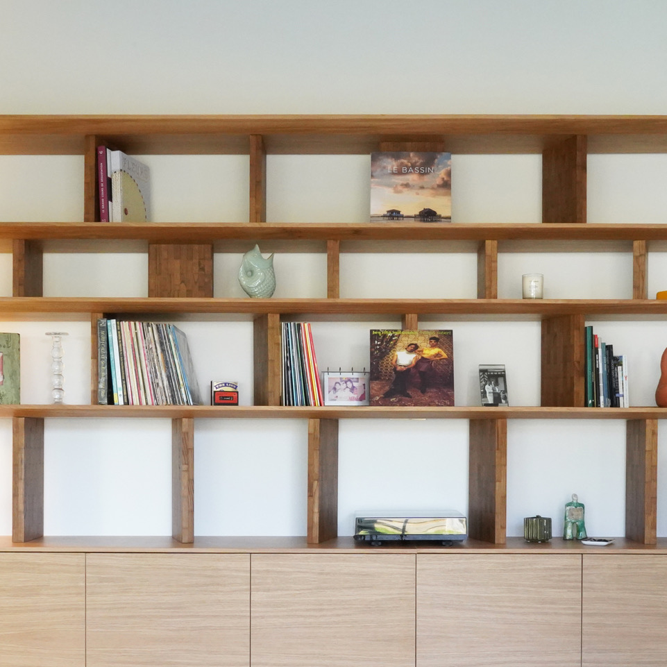 Chaque étagère est calculée. On supporte le poids des livres sans fléchir.